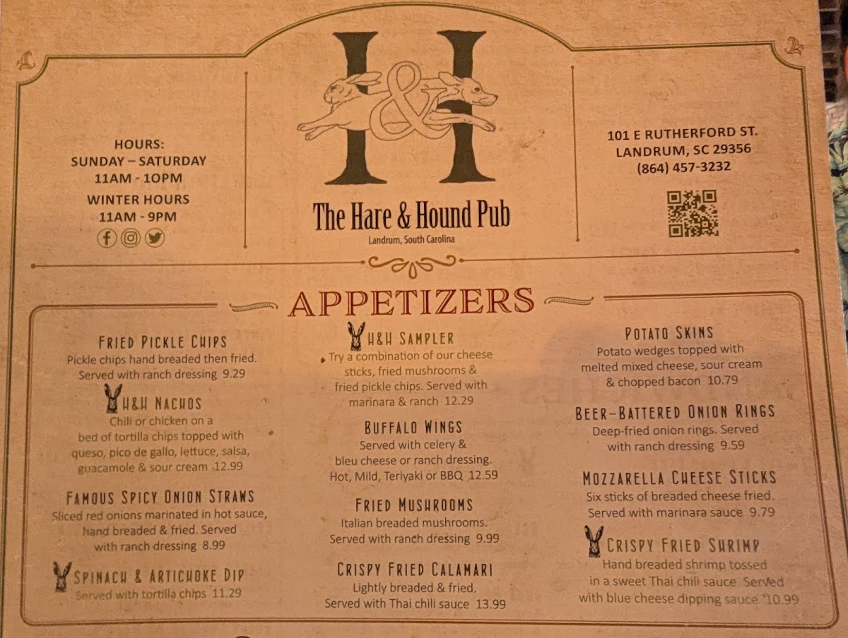 Welcome to The Hare and Hound, a quaint eatery nestled in downtown Landrum, SC. This charming spot is celebrated for its inviting atmosphere and delicious menu. The culinary journey begins with tantalizing appetizers like Buffalo Wings, Fried Button Mushrooms, and H & H Nachos that promise to please any palate.